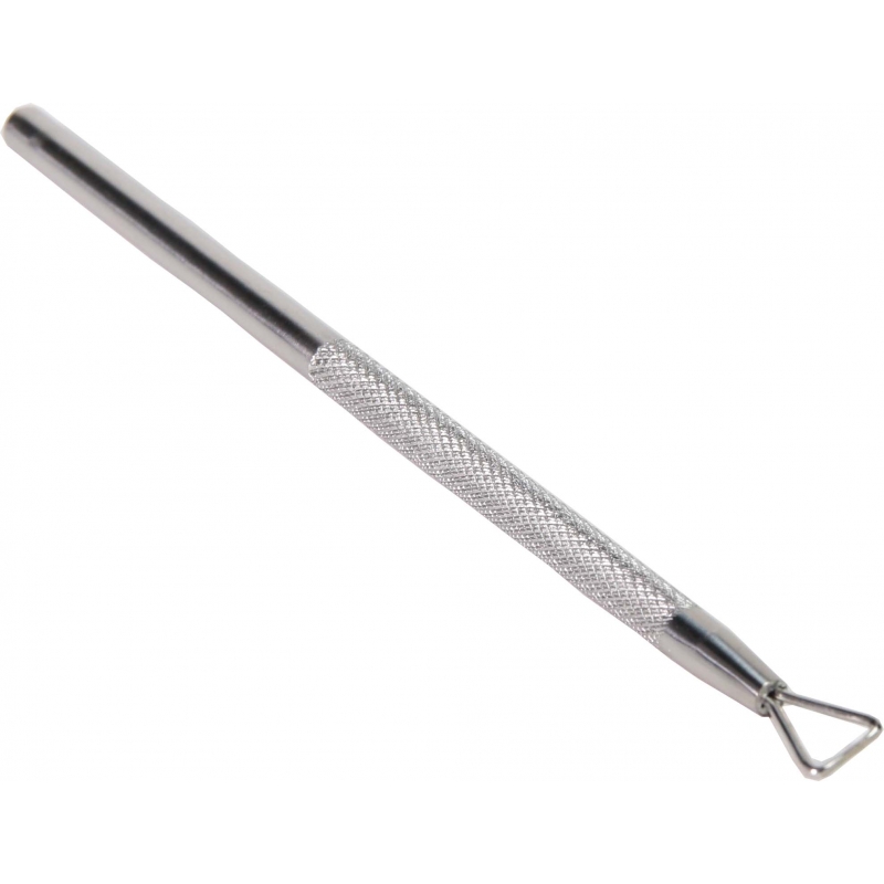 This scraper is made of stainless steel and is used to scrape off semi-permanent nail polish layers.